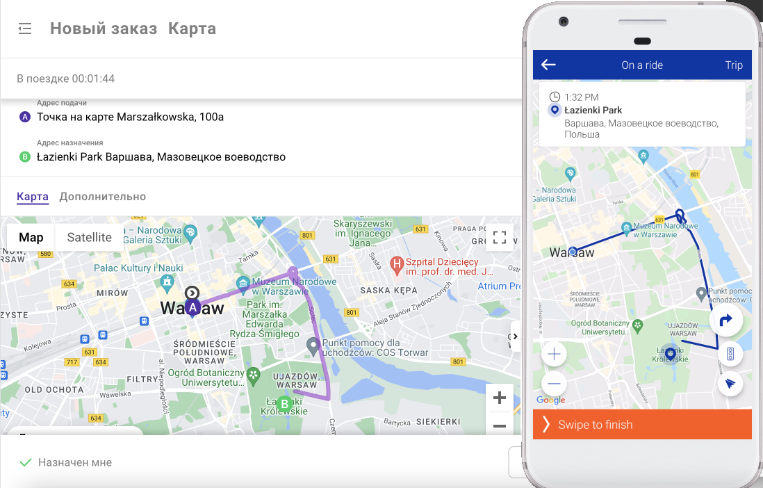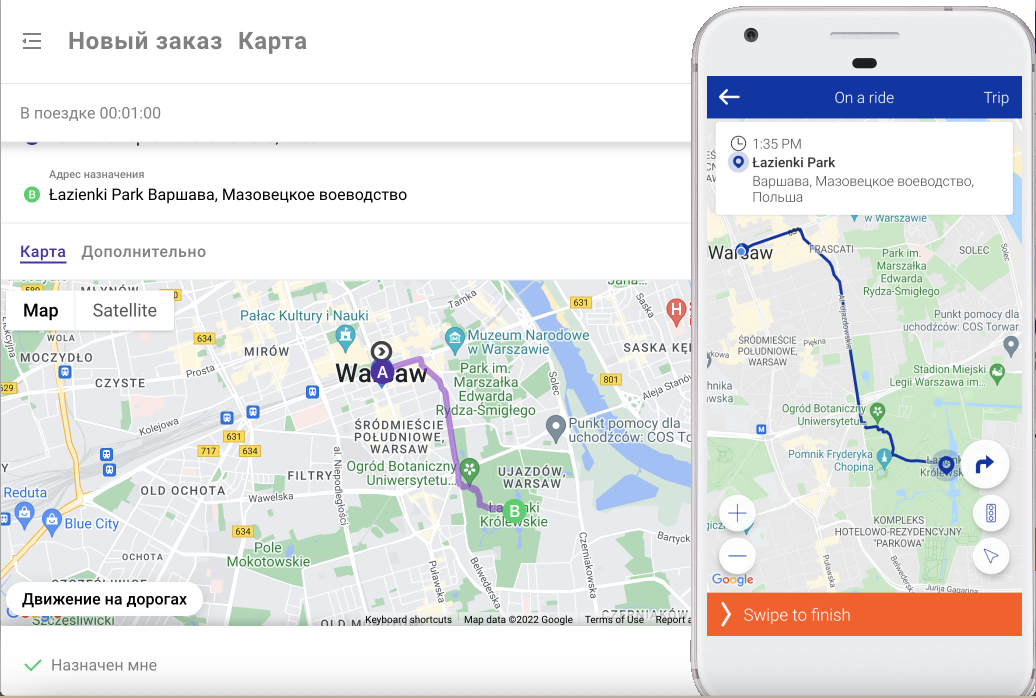 Автомобильный маршрут в приложениях оператора и водителя