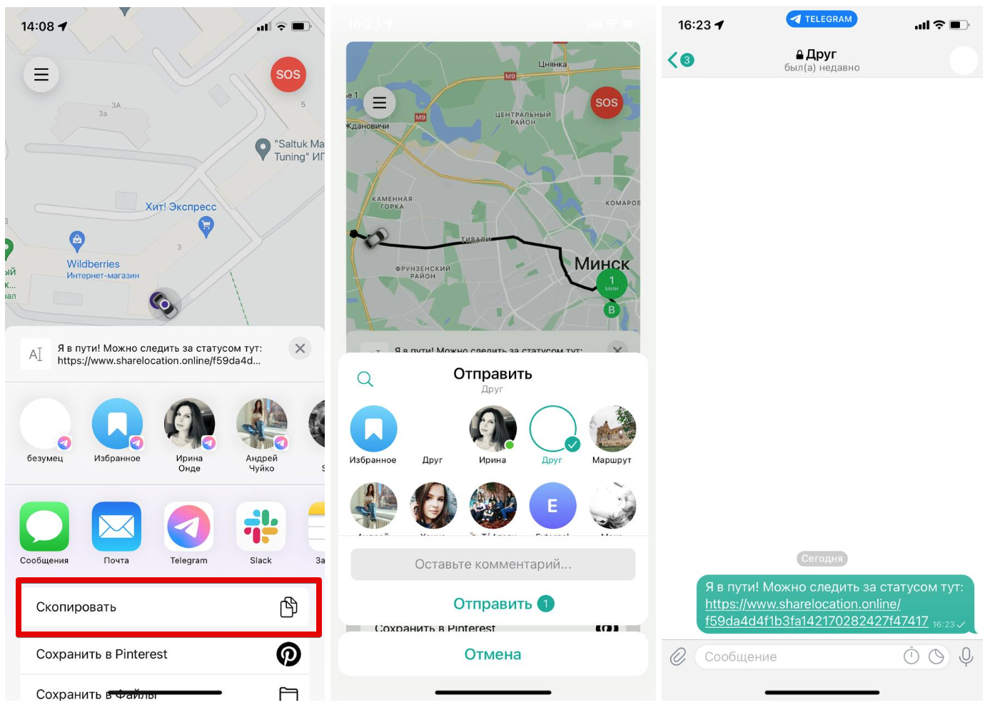 информировать друга/родственника о ходе поездки