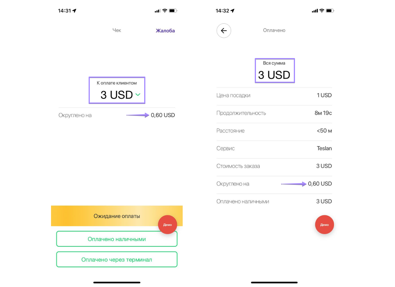 Примечание: цена не округляется на экране нового заказа в приложении водителя. При создании заказа цена округляется только в приложении клиента.