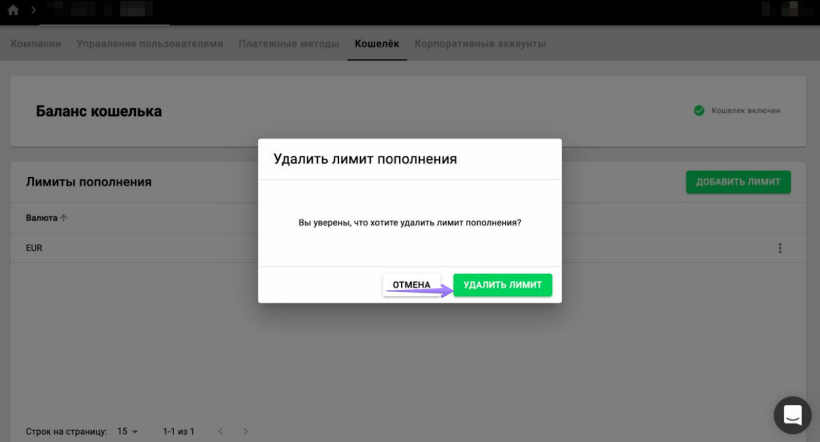 Если вы установили лимит пополнения с неправильной валютой или эта настройка больше не нужна, вы можете ее просто удалить.