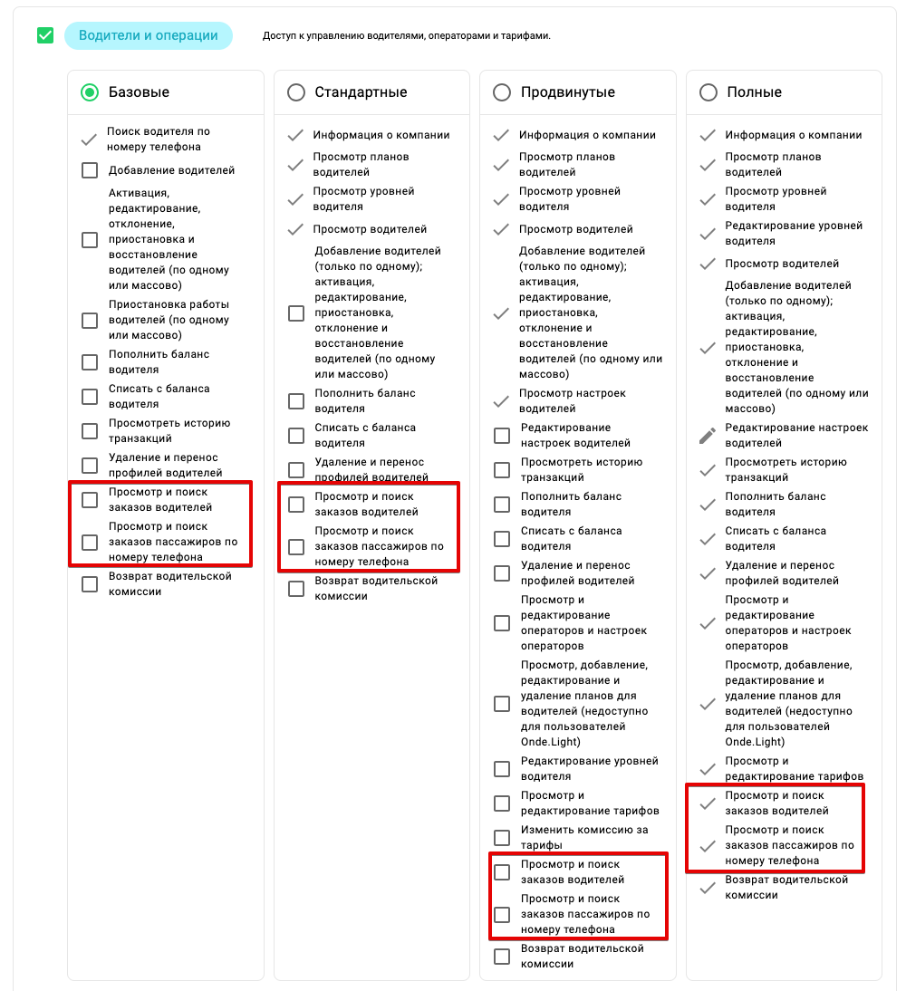 а) Базовые, Стандартные, Продвинутые - в случае, если опция “Просмотр и поиск заказов” активирована