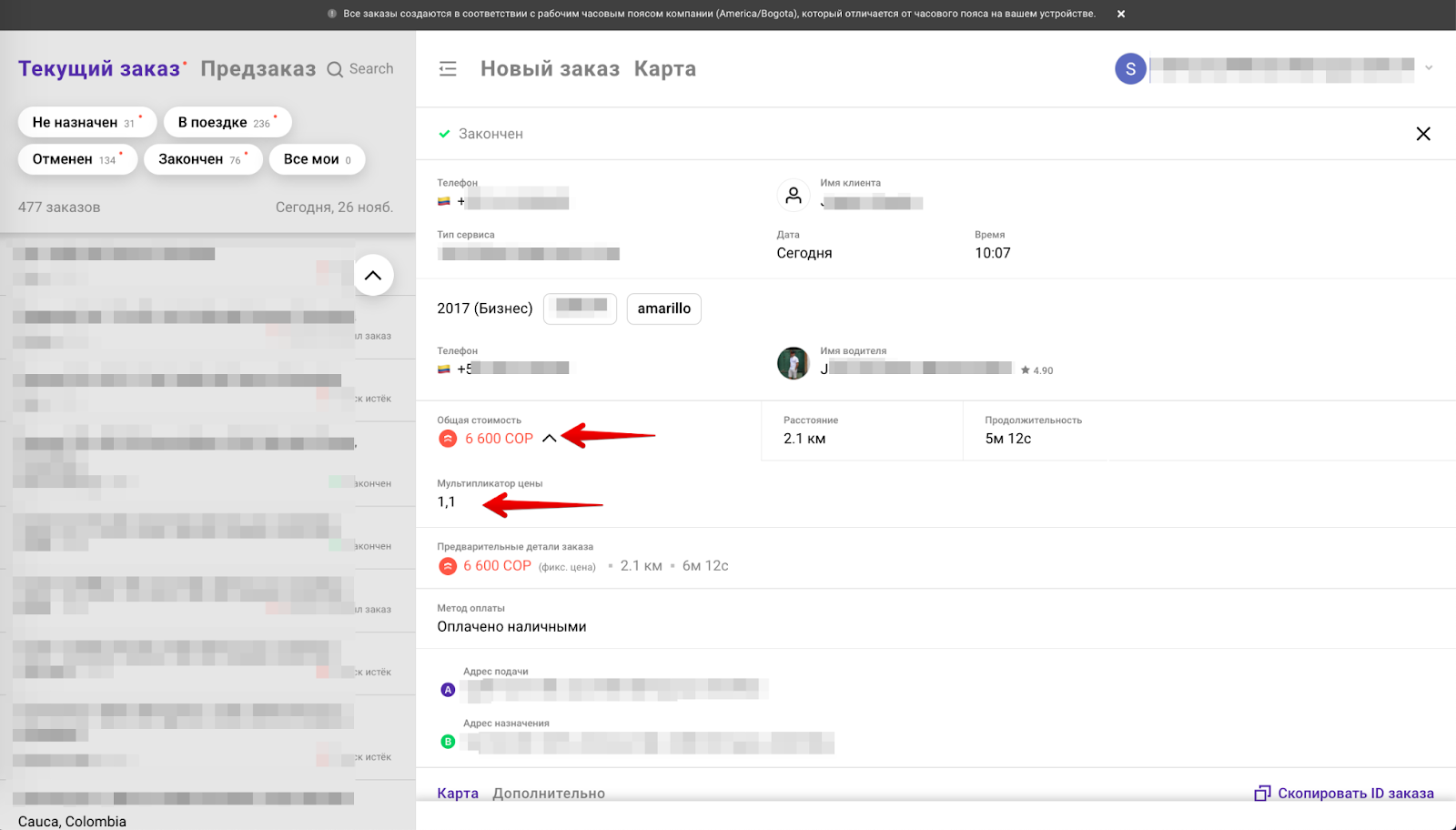 ВАЖНО: в случае, если оператор редактирует заказ/переназначает водителя/изменяет адрес посадки/обновляет сервис и коэффициент в момент редактирования отличается от изначального, он также обновляется.