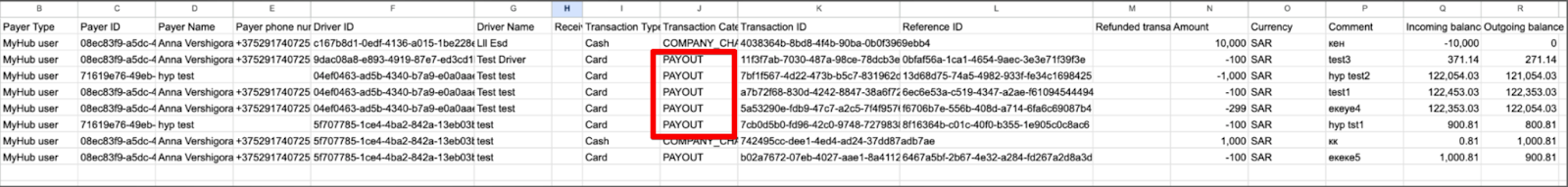 The company can track all HyperSplits payout transactions in their Hyperpay dashboard by the Reference ID from Drivers transactions report which matches Merchant Transaction id in HyperSplits dashboard.