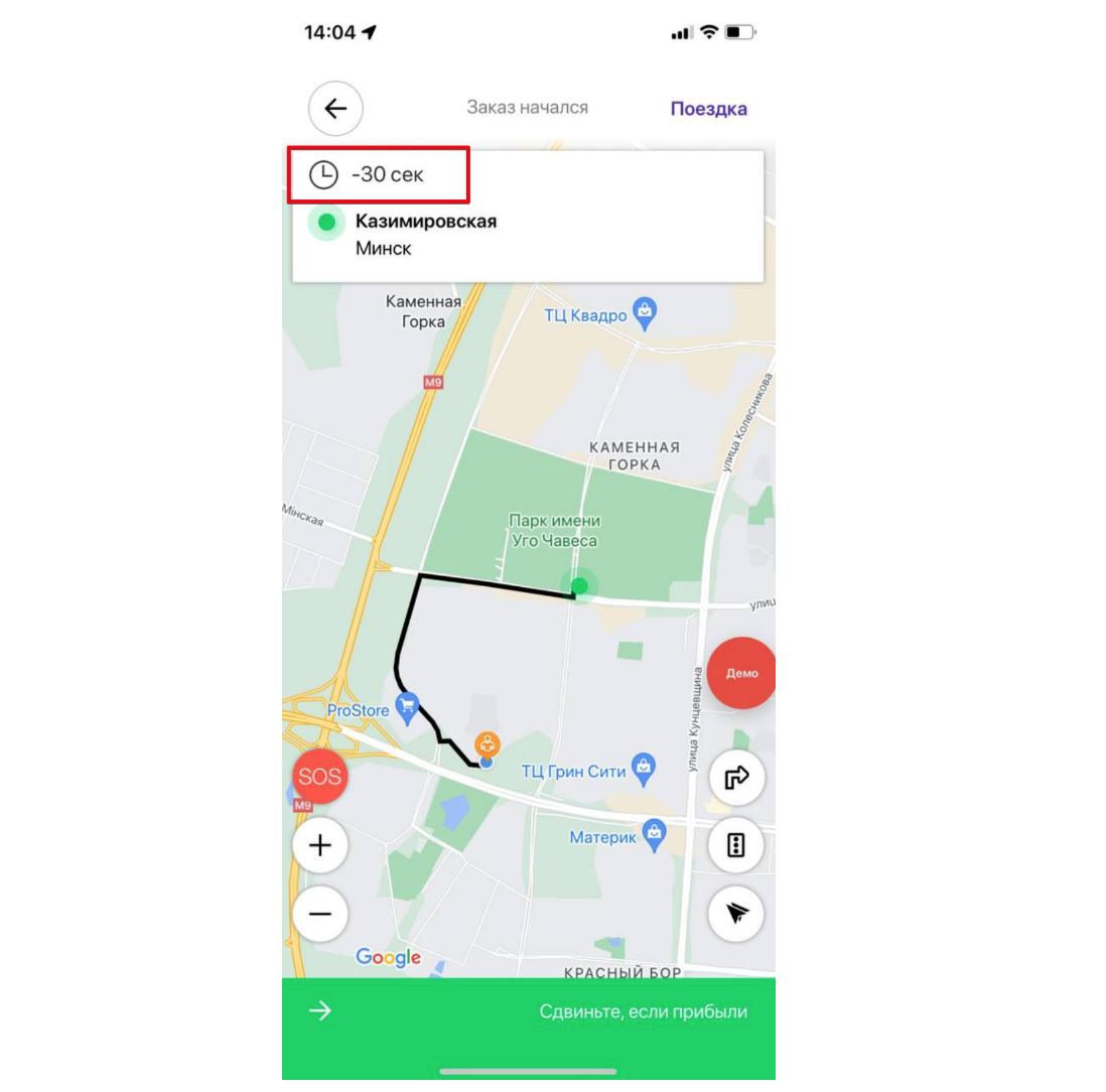 По мере приближения водителя к месту подачи приложение клиента будет показывать оставшиеся до прибытия минуты, а приложение водителя - обратный отсчет от изначального времени прибытия. Обратный отсчет начинается с момента принятия заказа и не зависит от фактического передвижения водителя, поэтому водителю нужно сразу направляться к месту подачи авто, чтобы успеть к указанному времени. Если водитель задержится, он рискует опоздать к клиенту.